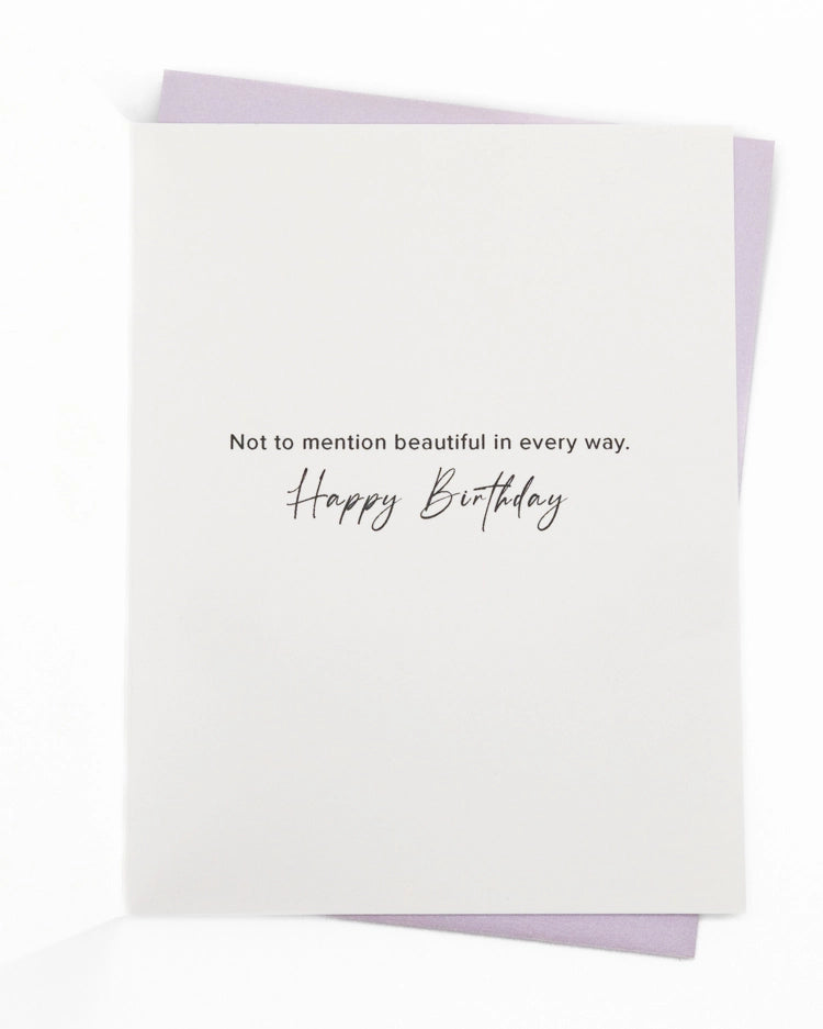 Inside message: Not to mention beautiful in every way. Happy Birthday