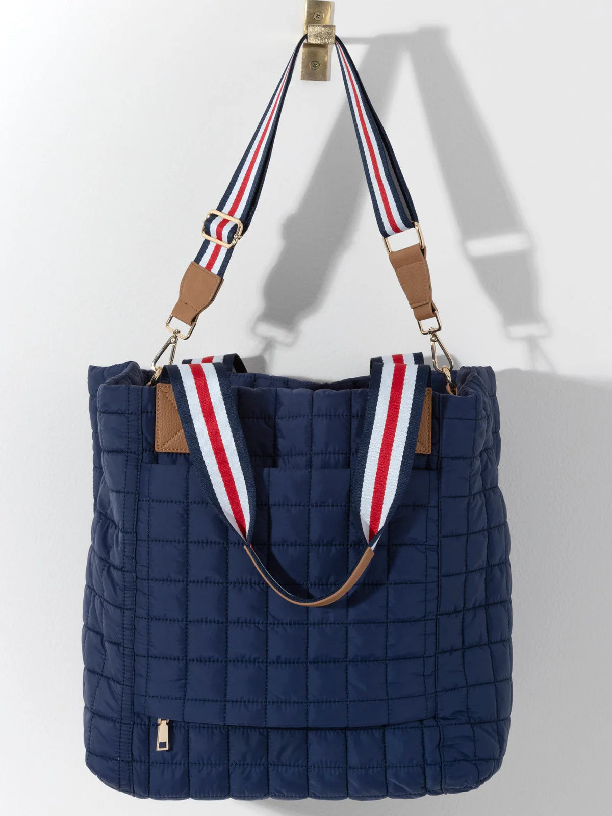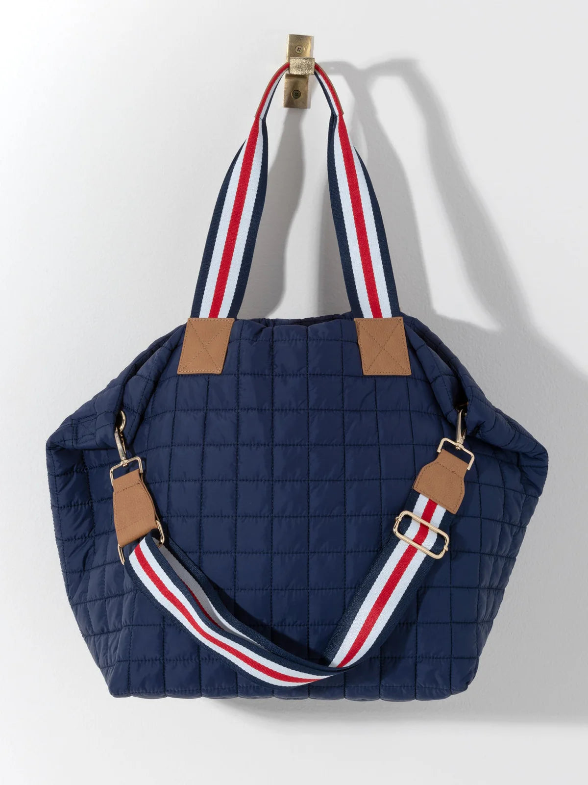 Meet your go-anywhere, carry-everything companion: this Travel Tote. Crafted from quilted nylon, this lightweight bag is designed to keep you effortlessly organized with ample space for your essentials (and then some). With durable dual handles and a playful detachable strap, you can wear it your way – crossbody, shoulder, or hand-held. Available in vibrant hues, versatile neutrals, and fun patterns, this tote ensures you're travel-ready with a side of style. Mix and match with other colors and silhouettes to create your own unique selection and complete your look!