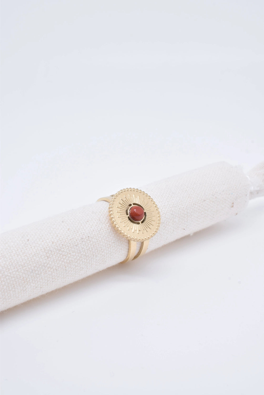 Crafted and sold in Paris, this golden ring with a natural Amethyst stone reflects the creative vision of this stainless steel jewelry. Rooted in a love for art, design, and sustainability, this collection offers timeless pieces that embody both elegance and resilience. The adjustable band fits sizes 52 to 60, providing a comfortable and customizable fit. Hypoallergenic and water-resistant, this ring resists tarnishing, ensuring lasting beauty and strength.