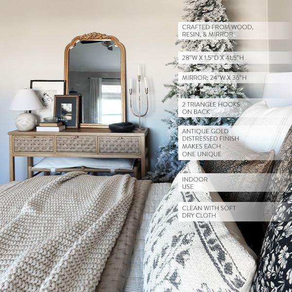 Our Antique-Inspired Ornate Gold Mirror delivers that swoon-worthy, old-world charm you’ve been hunting for—now paired with an incredible Cyber Monday surprise price. The intricate gold frame, detailed carvings, and timeless silhouette instantly elevate any space, turning even the simplest wall into a moment of elegance. Whether you place it in an entryway, above a mantel, or let it shine as a bedroom focal point, this piece brings warmth, character, and a touch of vintage glamour. Key Features Vintage Farmhouse Style: The ornate gold frame adds a rustic yet refined aesthetic, perfect for farmhouse decor. Exceptional Value: Comparable mirrors often cost double or more—enjoy luxurious style at a fraction of the price. Versatile Design: Ideal for any room, from entryways and living rooms to bedrooms and dressing areas. High-Quality Craftsmanship: Durable materials ensure this mirror remains a staple in your home for years. Generous Size: Large enough to make a statement while enhancing light and space in your room. This is the kind of mirror that looks like a treasured antique find, but with a Cyber Monday new low price that feels almost too good to be real. If you’ve been waiting for the moment to upgrade your decor, this is it—grab it before this special pricing disappears. Thank you to @loganmmaggio for the photos and video of the mirror