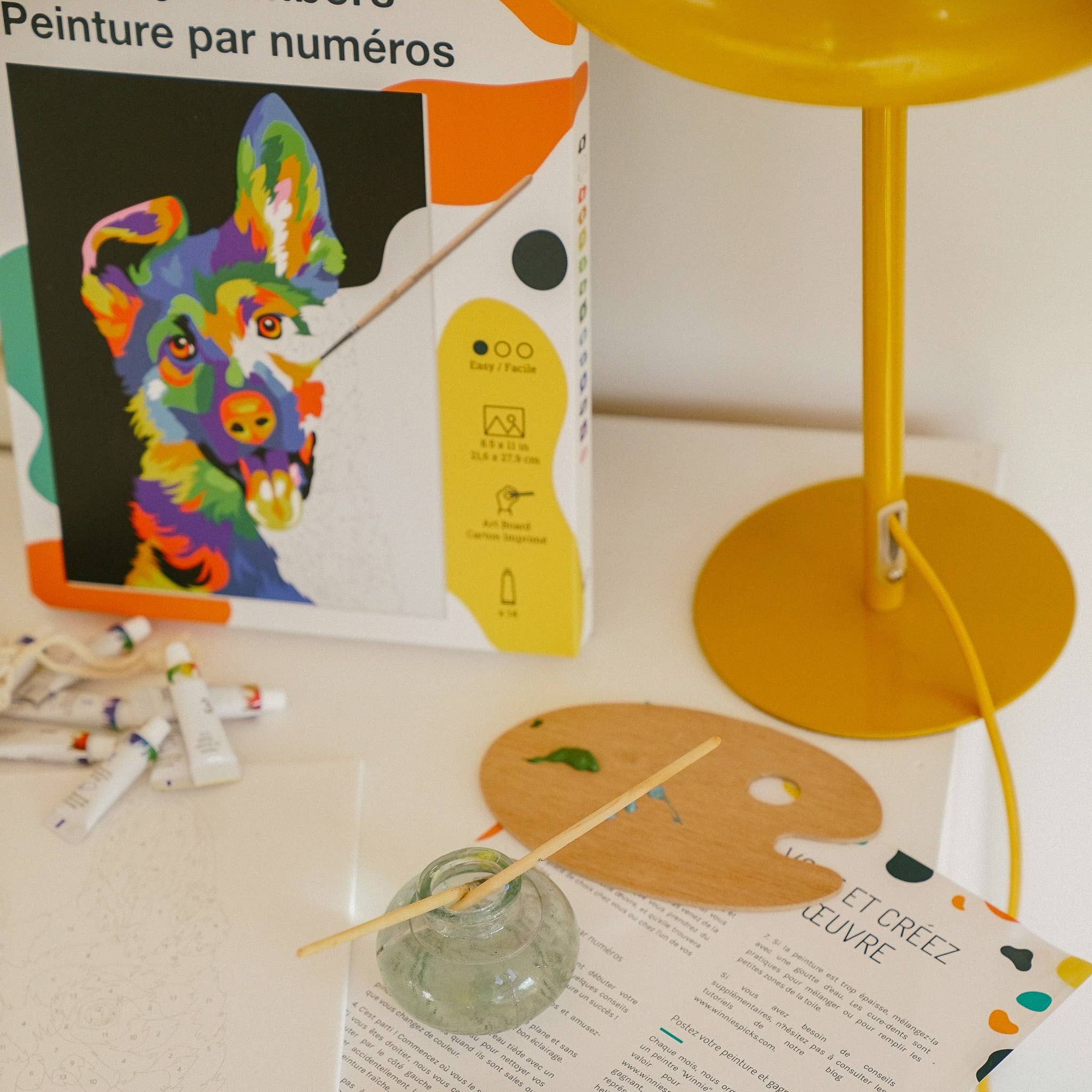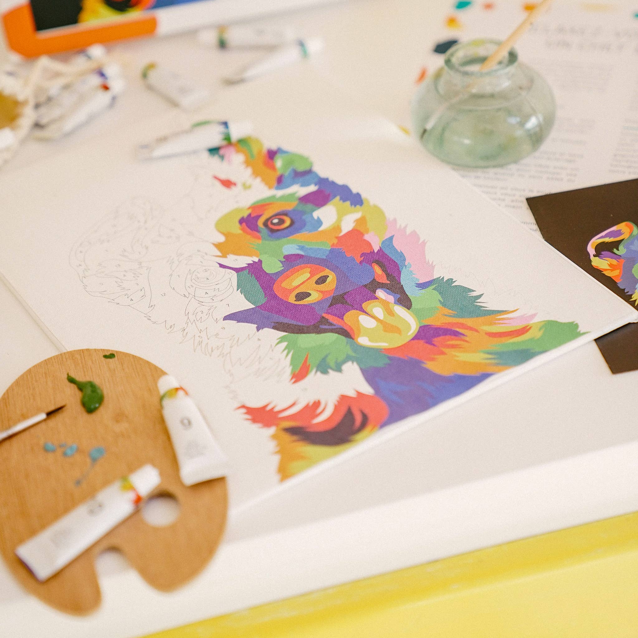 Experience a fun and contemporary paint-by-numbers kit that showcases striking colors and an endearing dog design. Perfect for animal lovers and pop art fans alike, the "Dog Pop Art” kit infuses any room with vibrant energy and charm. Featuring a pre-printed canvas board for accurate and simple painting, bright acrylic paints for stunning effects, and brushes tailored for smooth, detailed strokes, this kit offers an enjoyable and accessible creative escape. It’s the perfect choice for those of all ages who appreciate modern art and adore dogs.