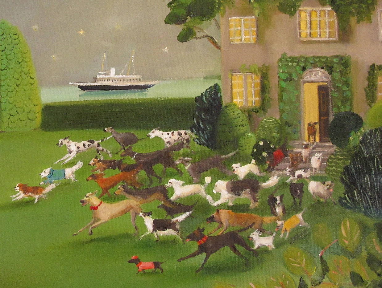 : Miss Moon Was A Dog Governess. Lesson Fourteen: Give A Warm Welcome, Even After The Shortest Of Absences. Image size: Approximately 7.5"x9.75". Paper size: 8.5"x11". Printed using Epson Ultrachrome archival inks on heavyweight matte fine art paper ( 100% cotton rag). Important Note: Frame not included. All prints are digitally signed and titled and come with an "Authentic Art Print" card. Prints are packaged with a lightweight chipboard backing for added stability.