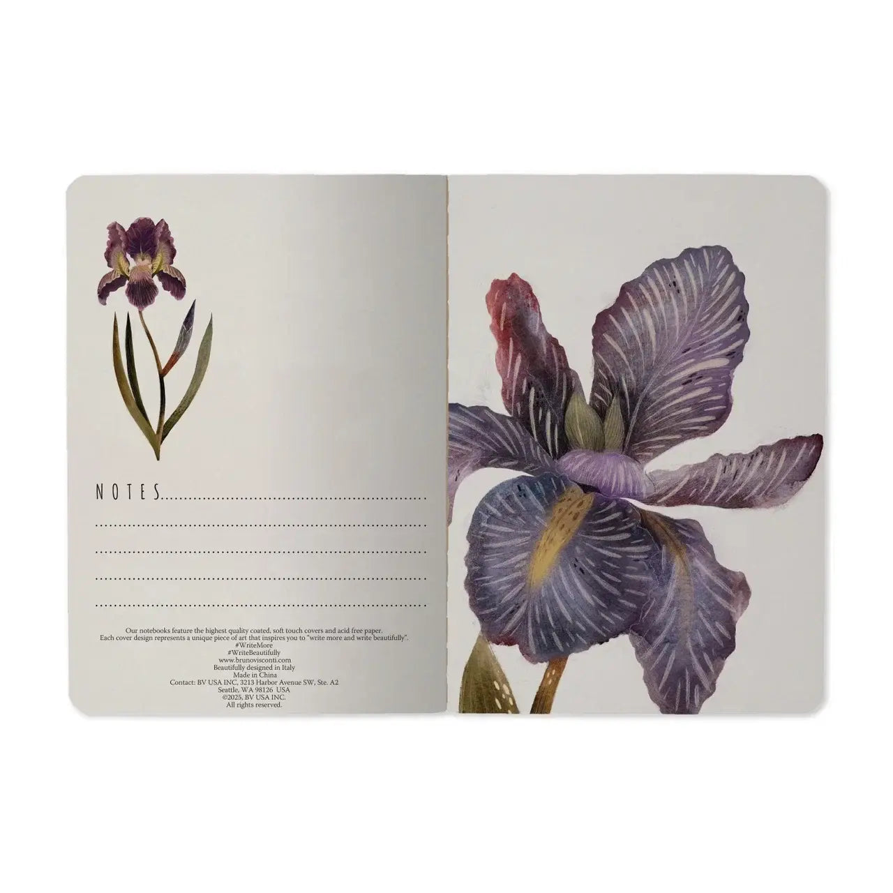 This passport sized notebook by Bruno Visconti featuring charming irises is the perfect little companion for your daily notes and doodles. At just 4.13 x 5.83 inches, it fits snugly in your bag or pocket. The coated cardboard cover keeps it looking fresh, while the 32 ruled pages acid-free paper that will not smudge and art in inside the front and back cover. Also, inside is a place for your name and information. invite your thoughts to bloom in neat lines. Small, stylish, and ready for your next brilliant ideas!