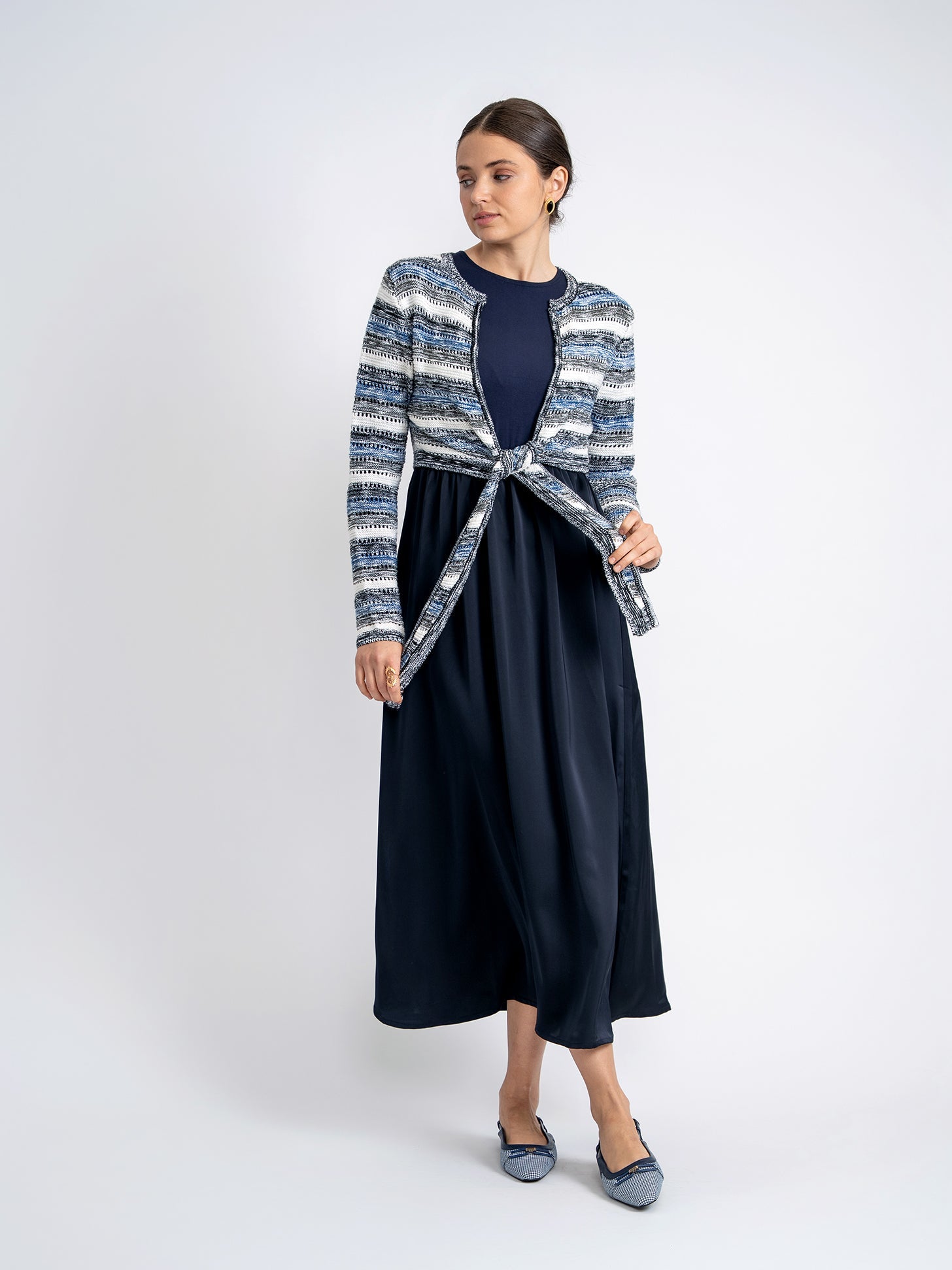 Teens long sleeve dress with modal top and satin bottom. ֲAvailable in the following colors: Navy Black Composition: 50% Polyester, 47% Viscose, 3% Spandex KnitWashing Instructions: MACHINE WASH COLD, INSIDE OUT, NO CHLORINE BLEACH, TUMBLE DRY LOW. Produced in China and the U.S..