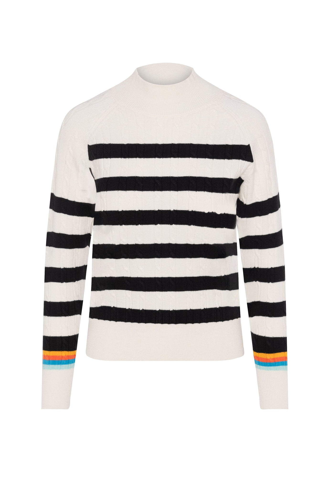Ladies striped cable knit sweater. ֲAvailable in the following colors: Cream Black Composition: 50% Viscose, 28% Polyester, 22% Nylon KnitWashing Instructions: HAND WASH COLD, INSIDE OUT, NO CHLORINE BLEACH, LAY FLAT TO DRY