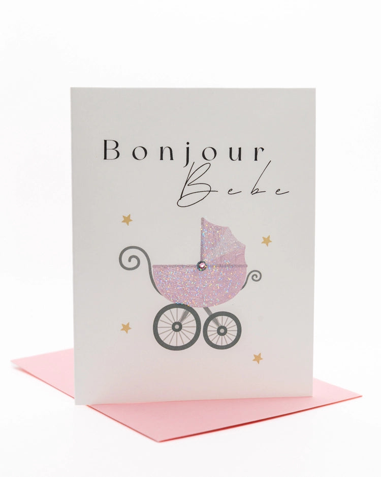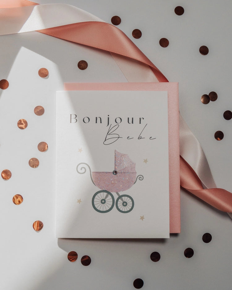 Bonjour, bébé! Prepare to welcome the sweet little princess into the world with this 'Bonjour Girl' Baby Shower Greeting Card! This French-inspired baby shower card is the perfect way to shower the growing family with love as their await their upcoming arrival. This new baby cards embody a sense of sweetness, love, and joy, making one of life's most cherished moments even more memorable.