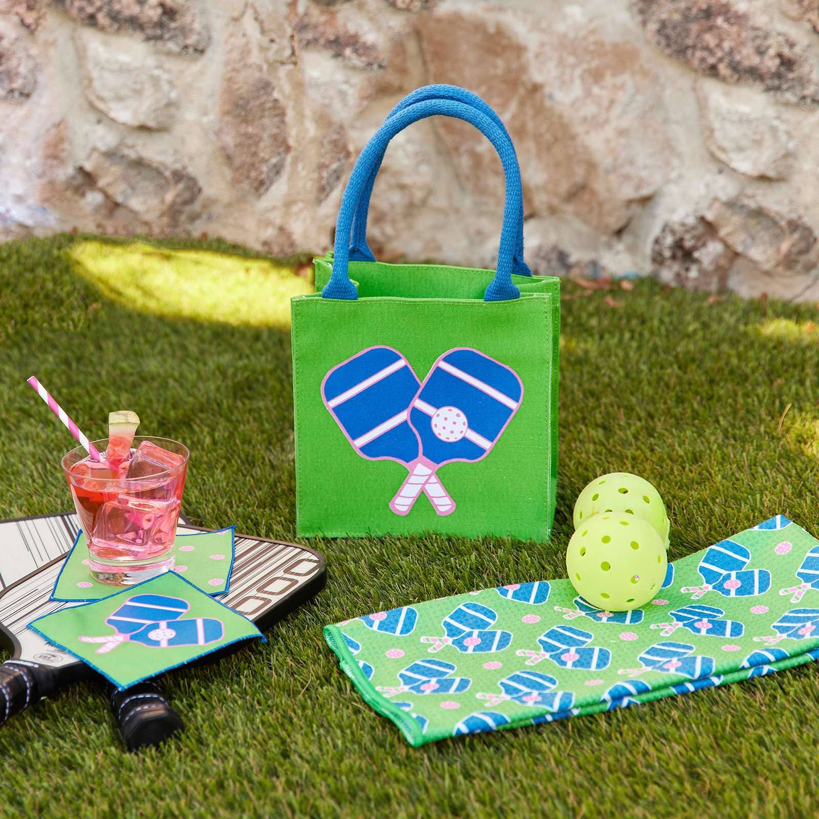 This best-selling itsy bitsy reusable sable gift bag offers an eco-friendly alternative to traditional gift wrap, doubling as a handy lunch bag or compact carryall. Use it creatively by filling it with a selection of treats and gifts from your shop for a one-of-a-kind present. This versatile tote features AZO-free dye, a strong cotton web handle, and a water-resistant lining. As part of our sustainable collection supporting Ocean Conservancy, we donate 5 cents from every bag sold. With its playful pickleball design, it’s perfect for birthdays, Mother’s Day, or hostess gifts.